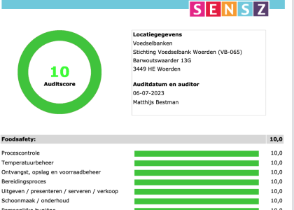 De Voedselbank Woerden streeft naar de maximaal haalbare scores waar het gaat om voedselveiligheid en